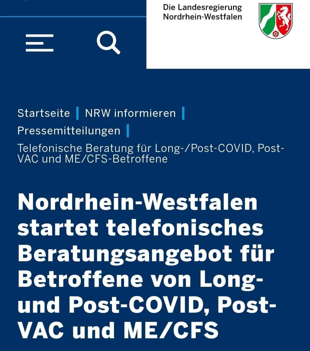 Kommentar schreiben (0 Kommentare)Nordrhein-Westfalen startet telefonisches Beratungsangebot für Betroffene von Long- und Post-COVID, Post-VAC und ME/CFS