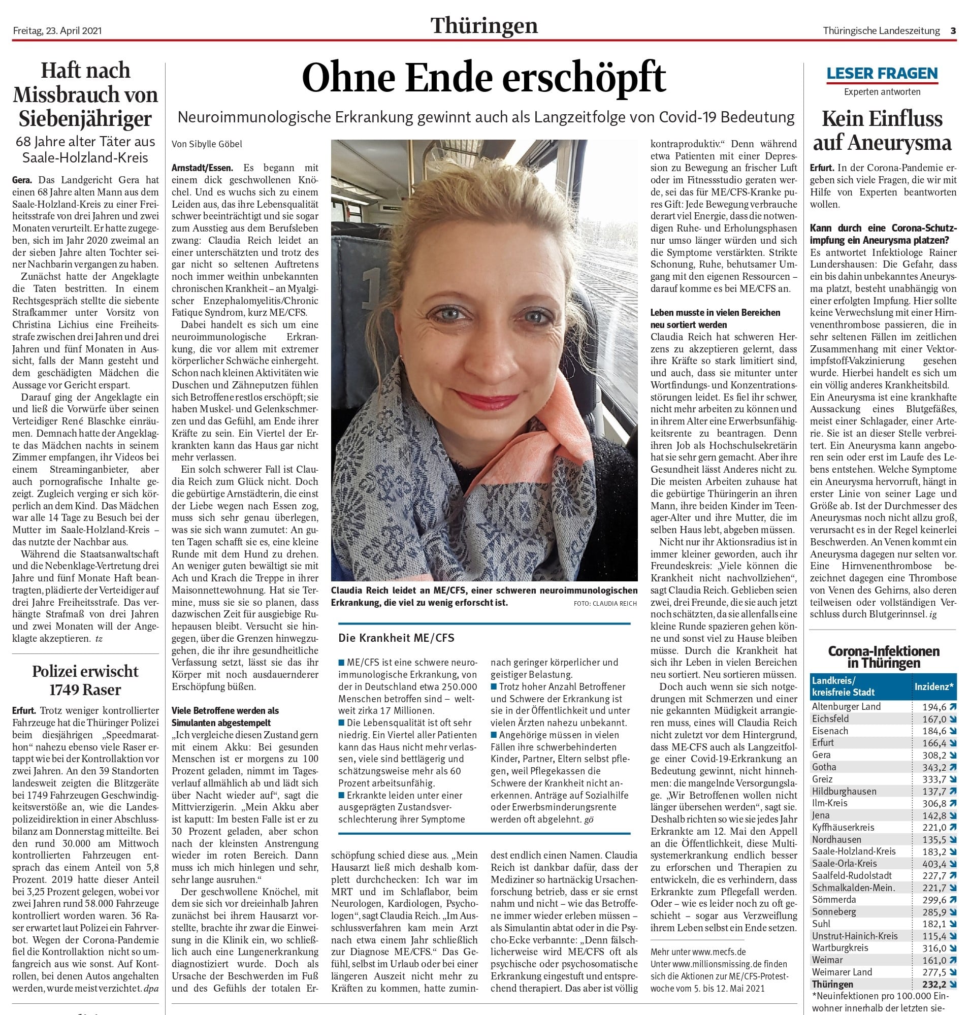 „Da hilft noch kein so langer Urlaub und keine Auszeit: Die gebürtige Arnstädterin Claudia Reich leidet an einer Erkrankung, die mit extremer körperlicher Schwäche einhergeht.“