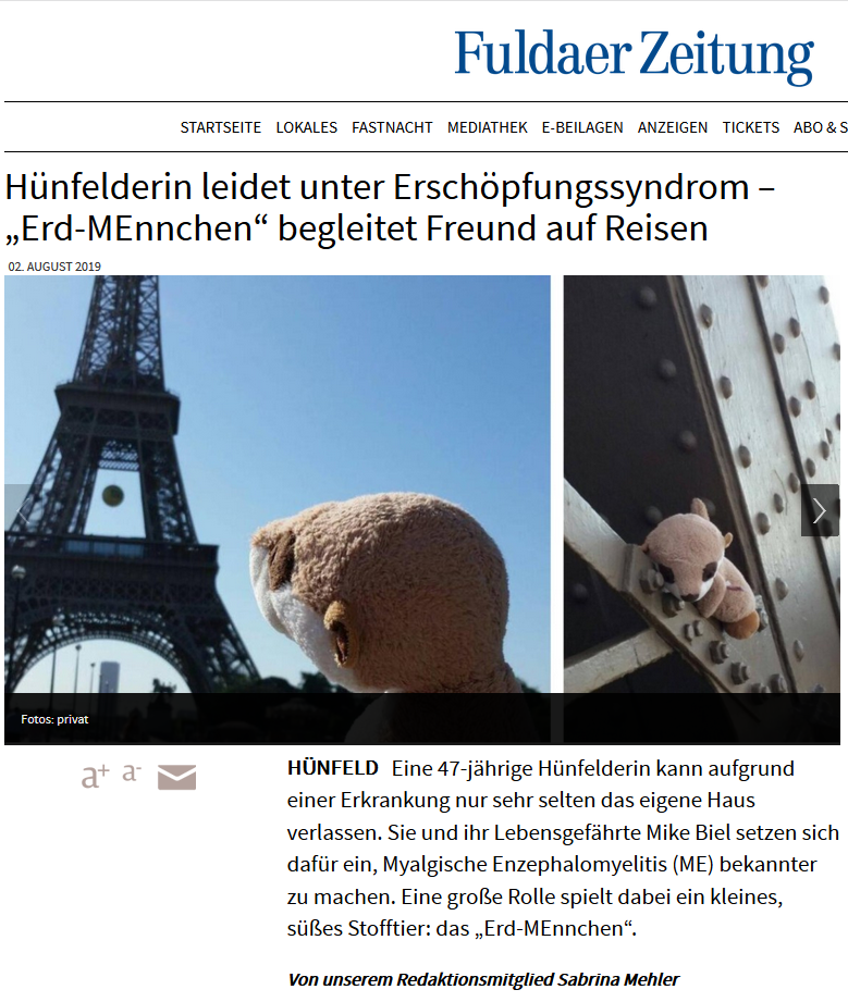 Hünfelderin leidet unter Erschöpfungssyndrom – „Erd-MEnnchen“ begleitet Freund auf Reisen