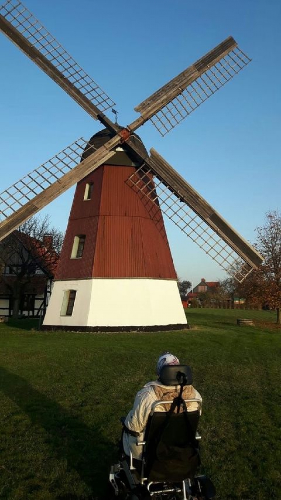 2019 bin ich in den Norden gezogen. Nur 3 Stunden vom Meer weg. Durch den Umzug habe ich mich so verschlechtert, dass ich fast bettlägerig geworden bin. Doch hier bekam ich endlich die Diagnose ME/CFS. Jetzt habe ich Pflegestufe und 80% Schwerbehinderung und die Merkmale B und G. Mein Mann kümmert sich liebevoll um mich. Er ist für mich da. Leider gibt es auch hier keine Ärzte in unmittelbarer Nähe, die sich auskennen. So warte ich seit Januar auf Blutuntersuchungen. Alle 2 Wochen schau ich, dass ich mit dem Elektrorollstuhl rauskomme, um den Norden zu genießen.
